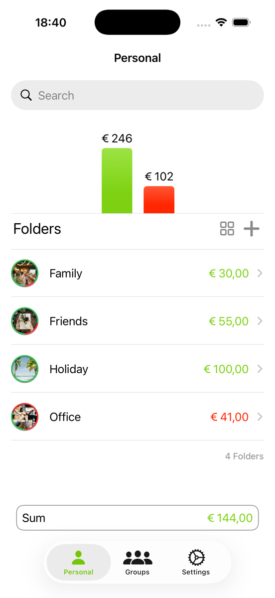 Am Ende der Seite findest du die Gesamtsumme aller deiner Ordner. Um einen neuen Ordner hinzuzufügen, klicke einfach auf das Pluszeichen. Du kannst Ordner bearbeiten oder entfernen, indem Du auf die Schaltfläche „Bearbeiten“ in der oberen rechten Ecke klickst.